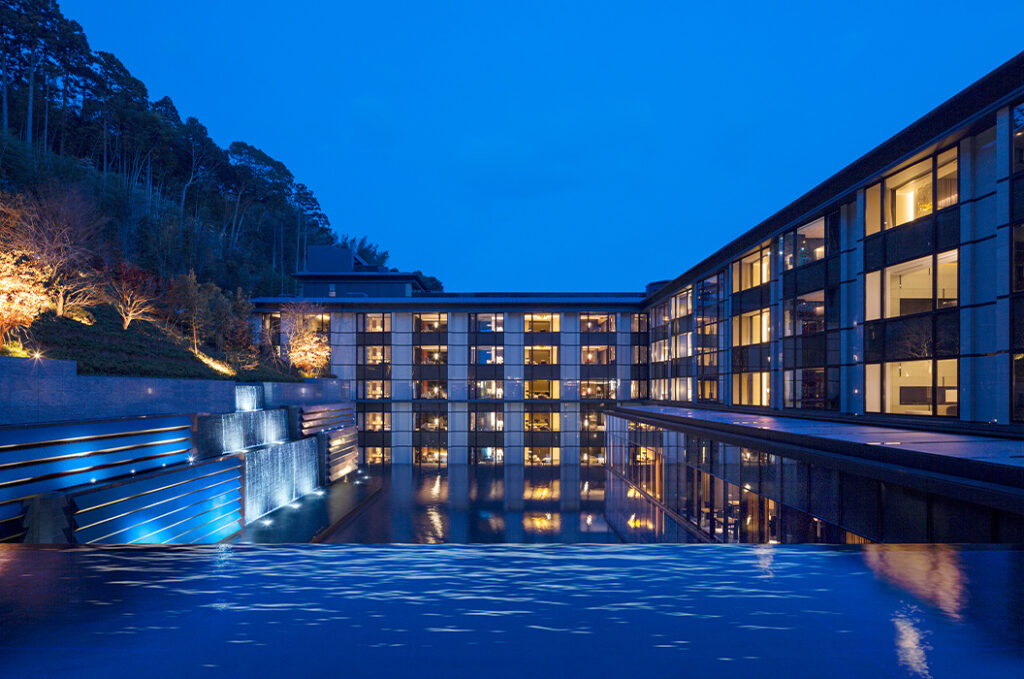 - 湯河原離宮で、水庭の静寂と和のモダンを味わう